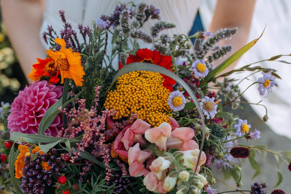 We grow an increasing range of beautiful flowers ourselves on the farm. We find this gives our look a freshness, a uniqueness, using varieties you just won't find on the high street, we also love to forage in our woods and hedgerows.